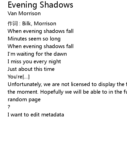 | Song | Evening Shadows |