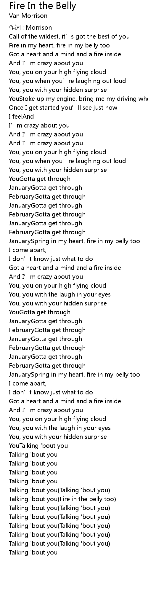 | Talking 'bout you(Fire in the belly too) | |