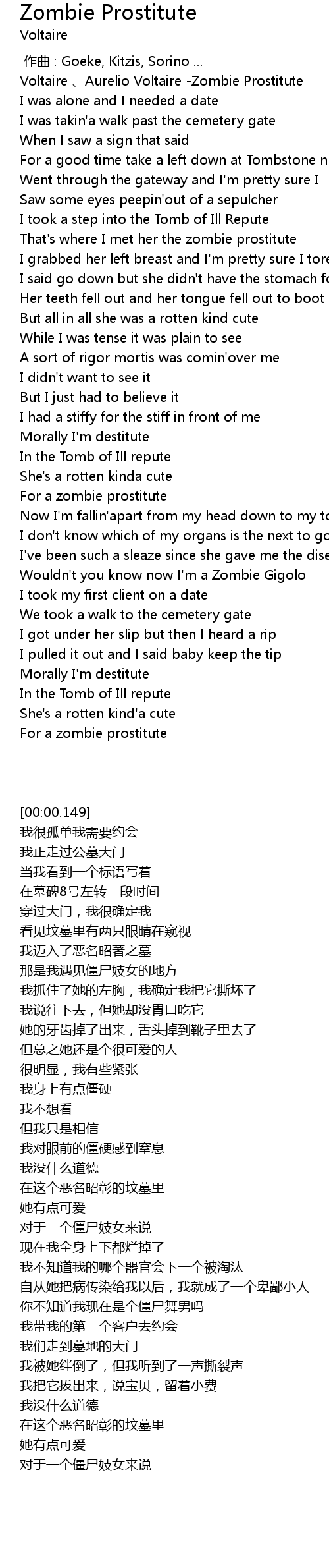 | [00:00.149] | Voltaire 、Aurelio Voltaire -Zombie Prostitute |