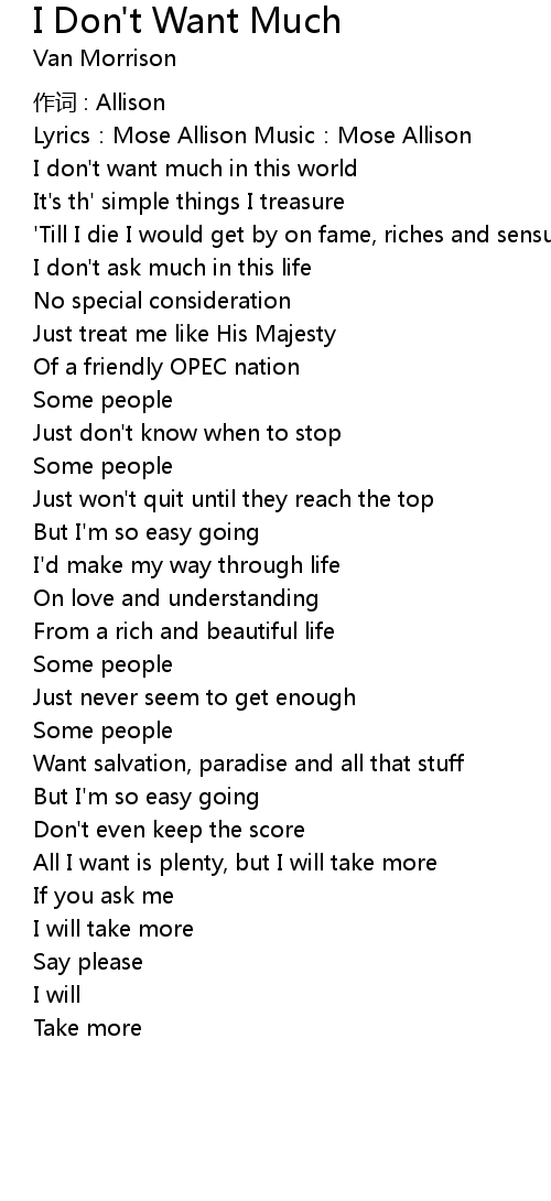 | I don' t want much in this world | |