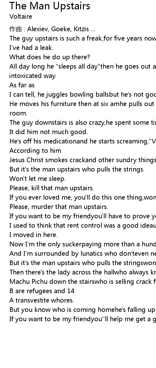 | The guy downstairs is also crazy, he spent some time in an institute. | |