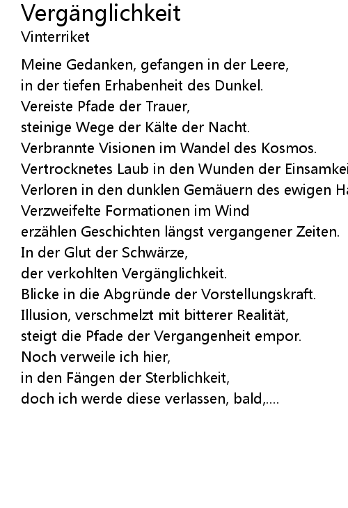 | Vertrocknetes Laub in den Wunden der Einsamkeit. | |
