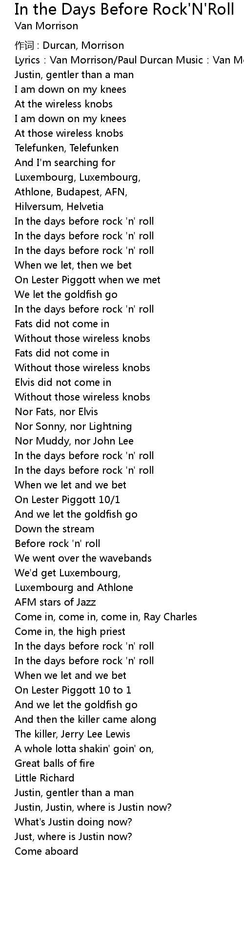 | Lyrics:Van Morrison/Paul Durcan Music:Van Morrison | |
