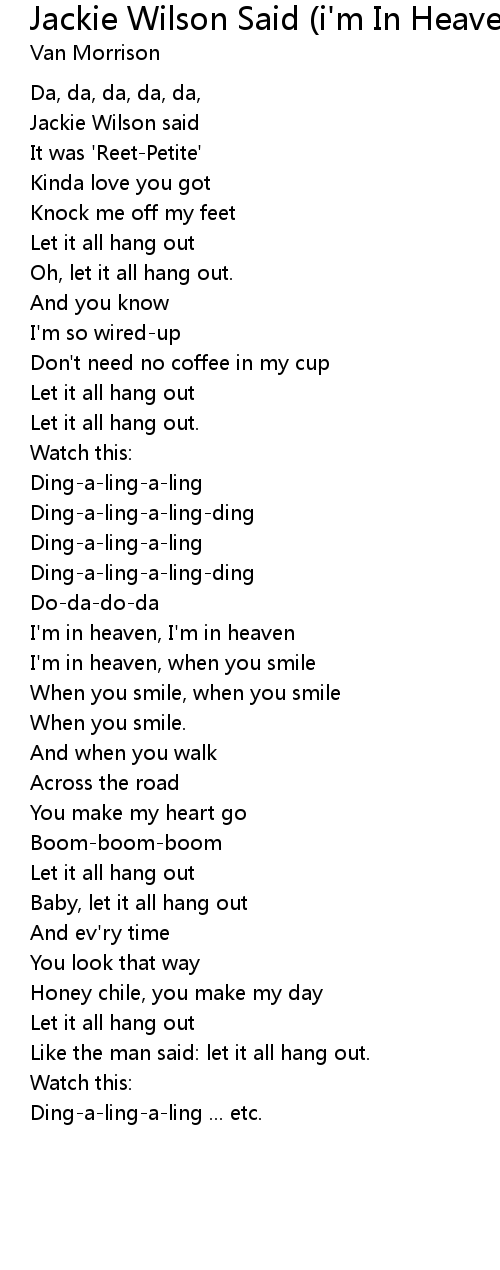 Song Jackie Wilson Said (i'm In Heaven When You Smile)