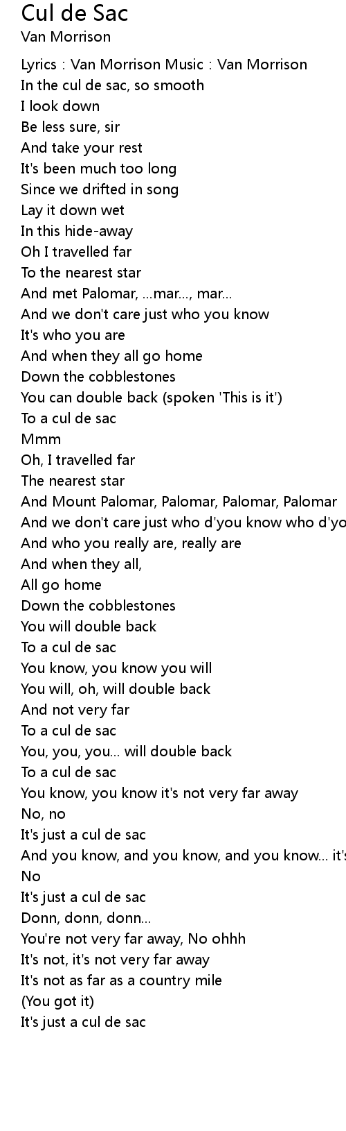 | Lyrics:Van Morrison Music:Van Morrison | |