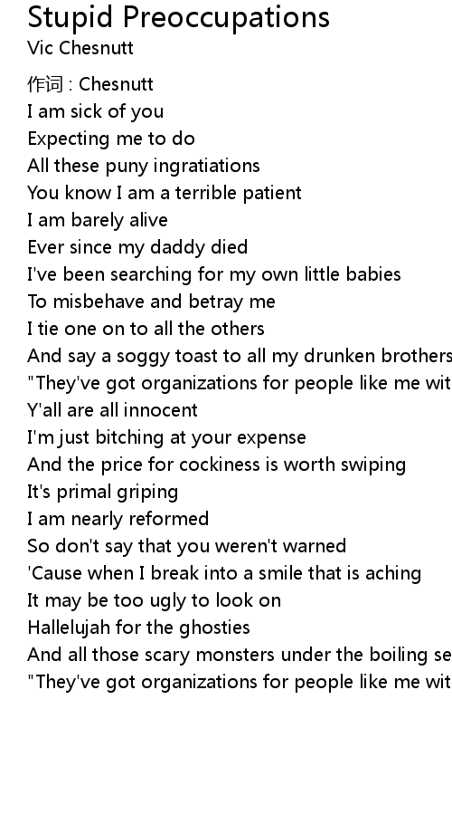 | "They've got organizations for people like me with stupid preoccupations" | |
