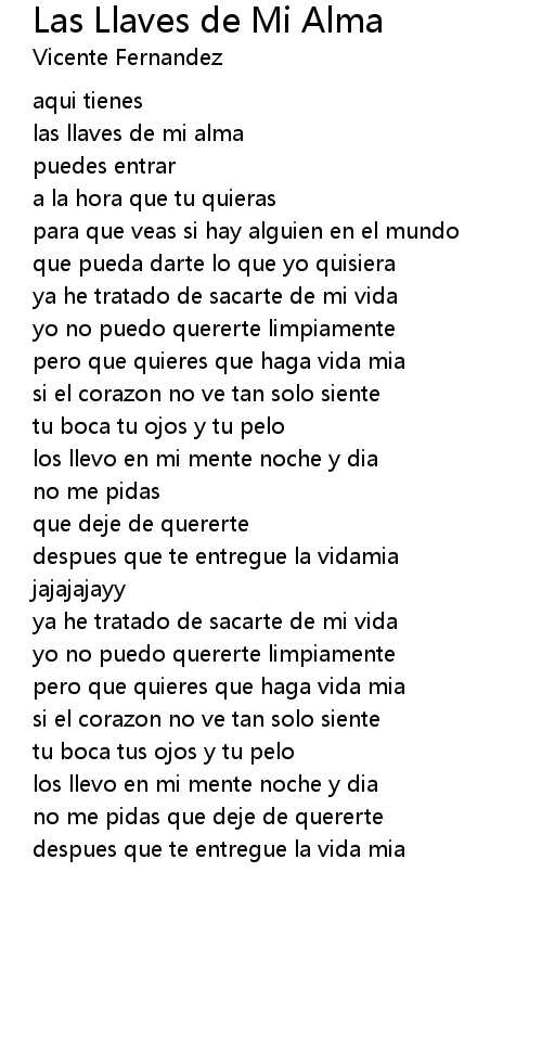 Las Llaves de Mi Alma Lyrics