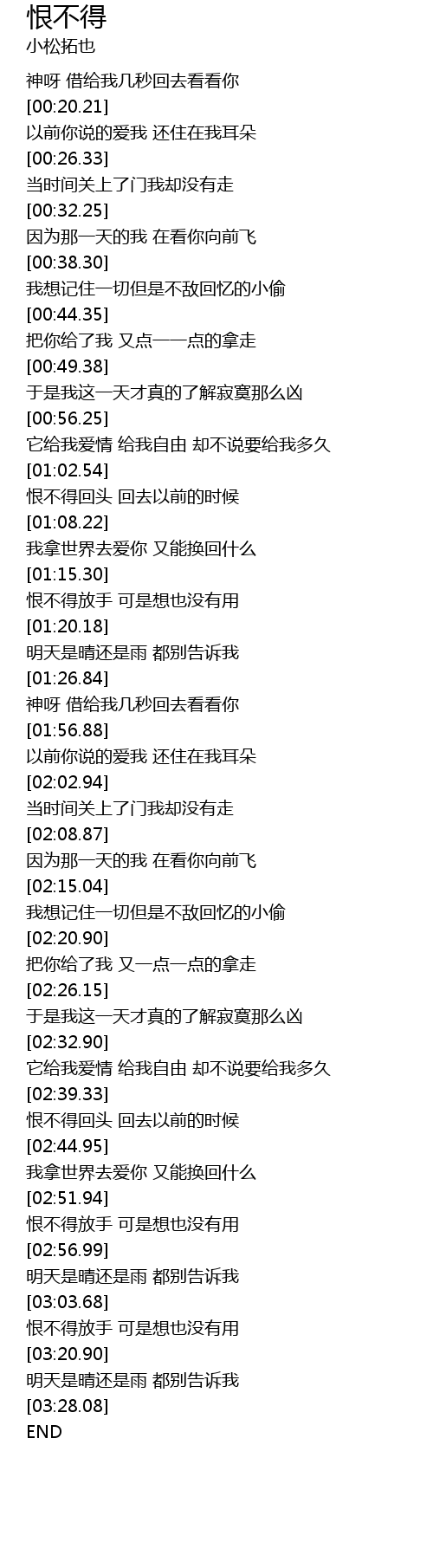 | [03:17.09] | 恨不得放手 可是想也没有用 |