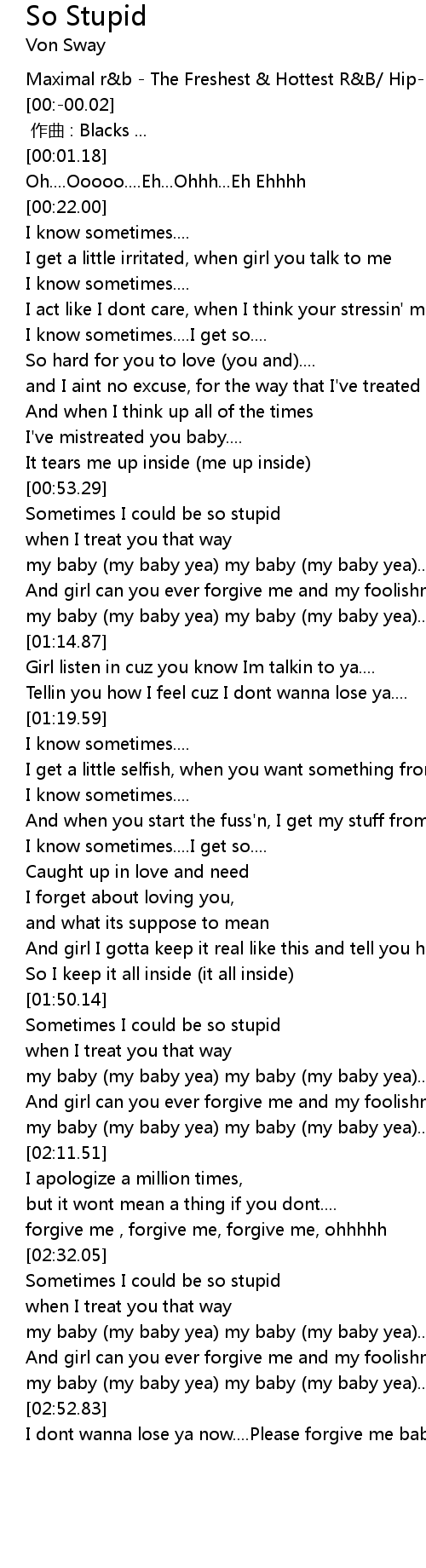 | [02:55.34] | I dont wanna lose ya now.... Please forgive me baby |