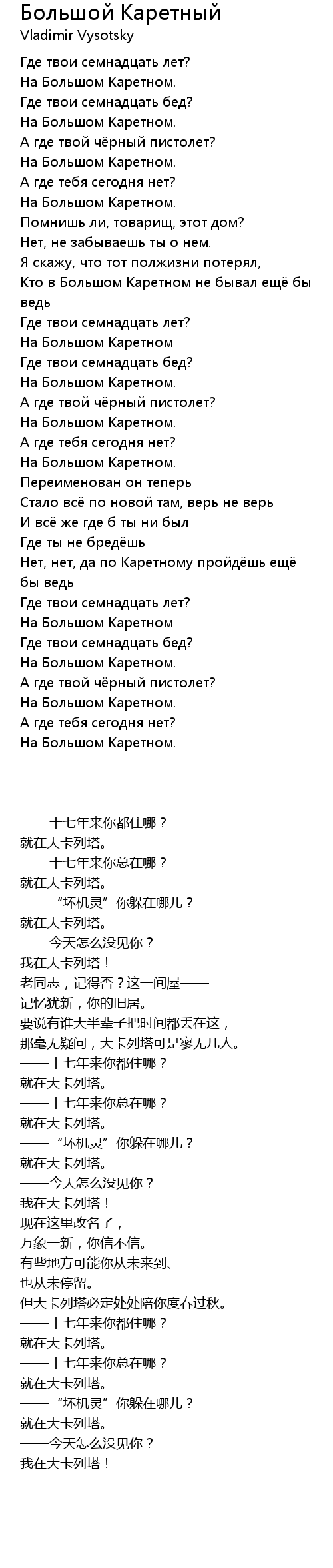 Кто в Большом Каретном не бывал ещё бы ведь |