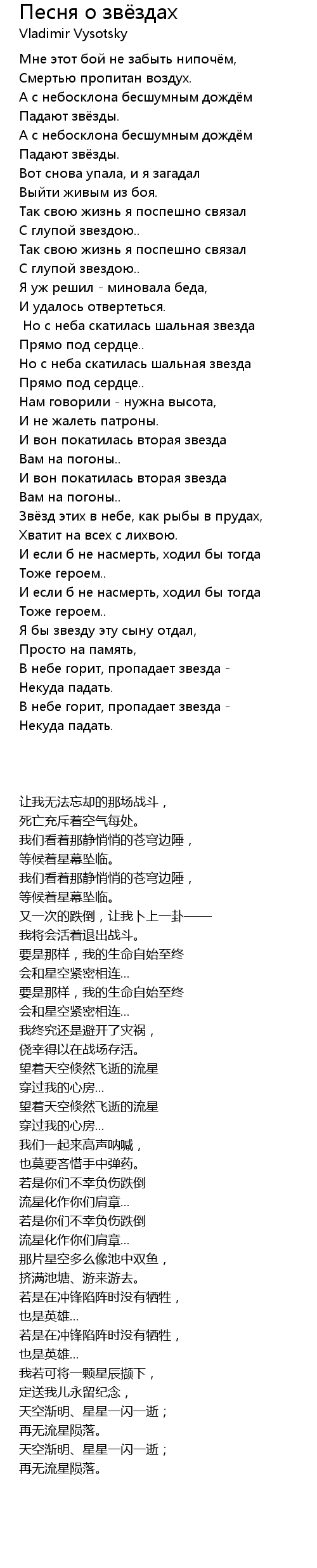 Песня о звёздах  Lyrics
