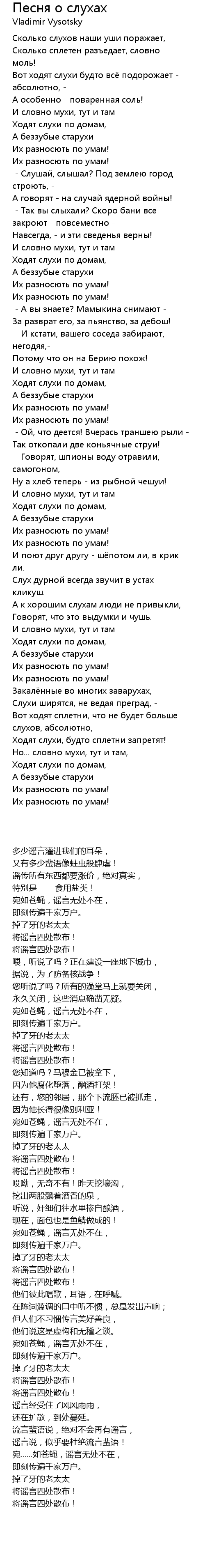 Вот ходят сплетни, что не будет больше слухов, абсолютно, |