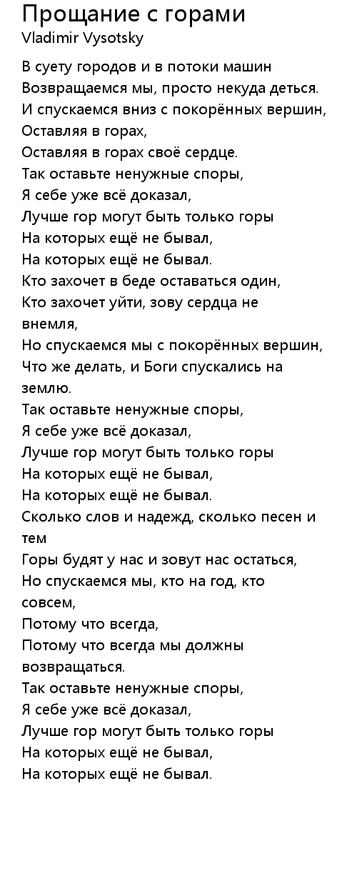 Прощание с горами  Lyrics