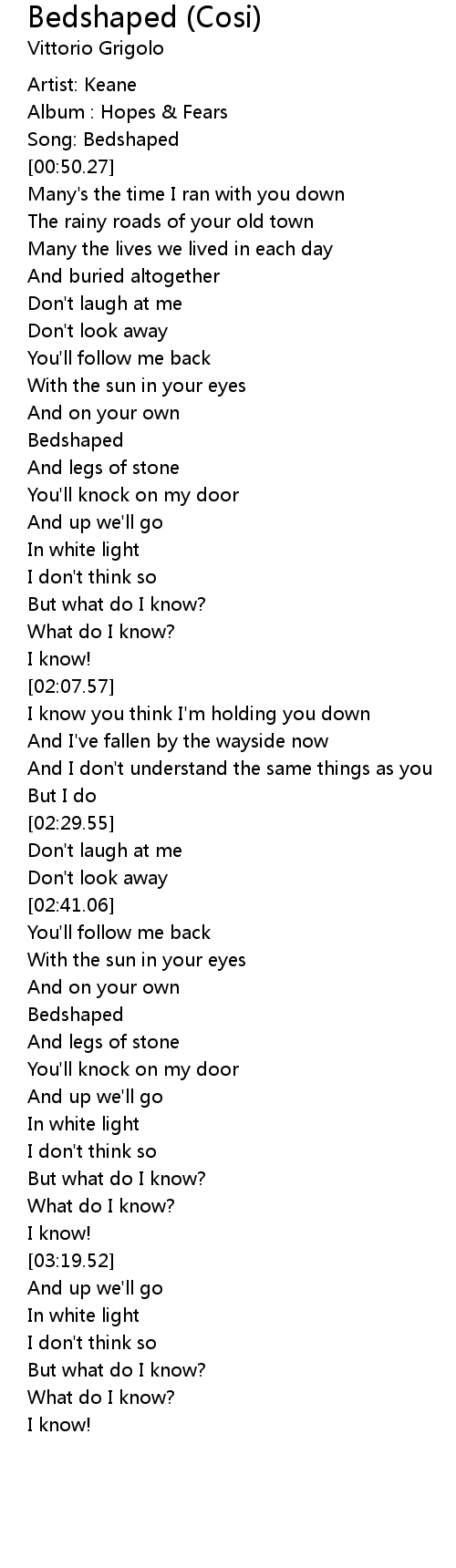 Song: Bedshaped |