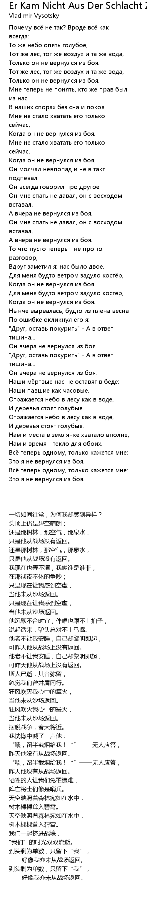 Er Kam Nicht Aus Der Schlacht Zurü ck Lyrics