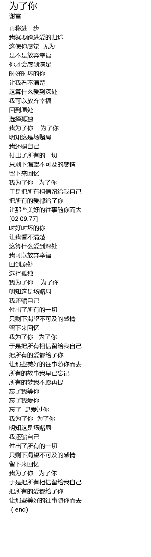 | [02:55.76] | 我为了你 为了你 |