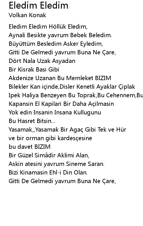 | Eledim Eledim Höllük Eledim, | |