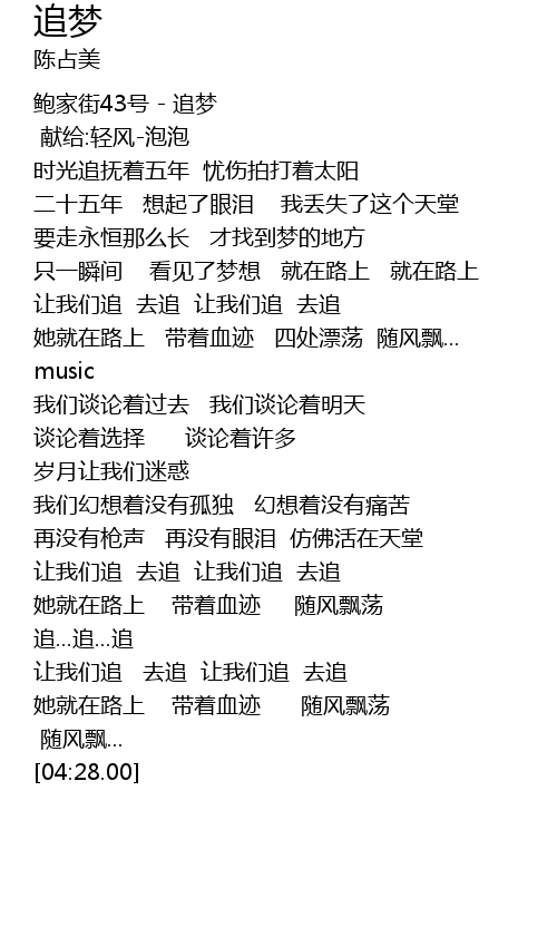 | [00:00.00] | 鲍家街43号 - 追梦 |