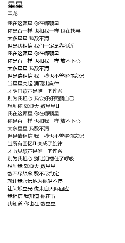 | [03:45.790] | 想到我 就仰天 数星星 |