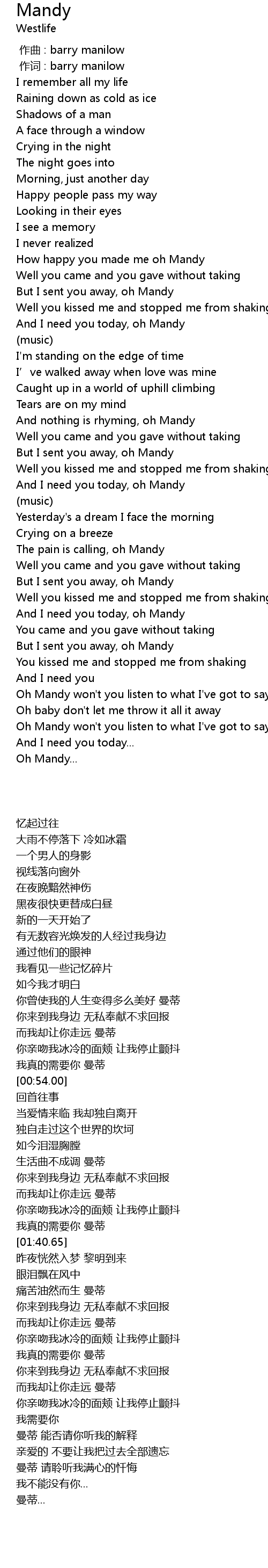 | [01:38.68] | And I need you today, oh Mandy |