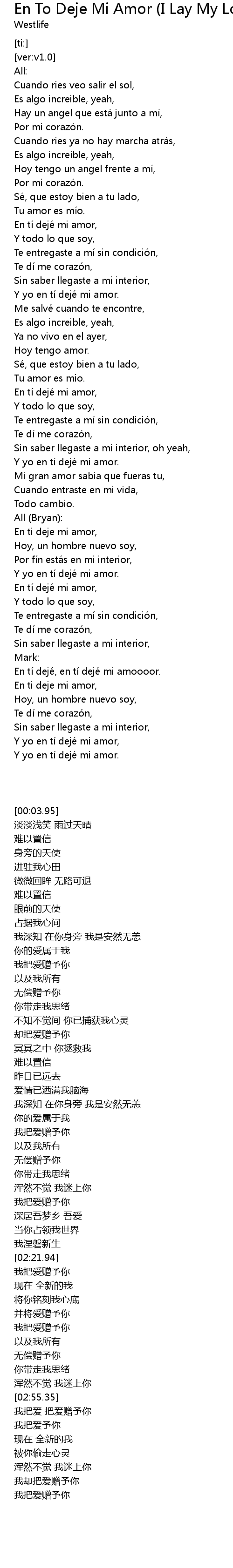 | [03:19.82] | Y yo en ti deje mi amor. |