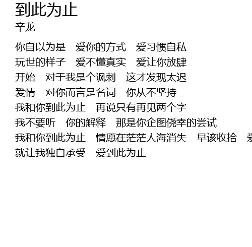 | 我和你到此为止 情愿在茫茫人海消失 早该收拾 爱情的残值 | |