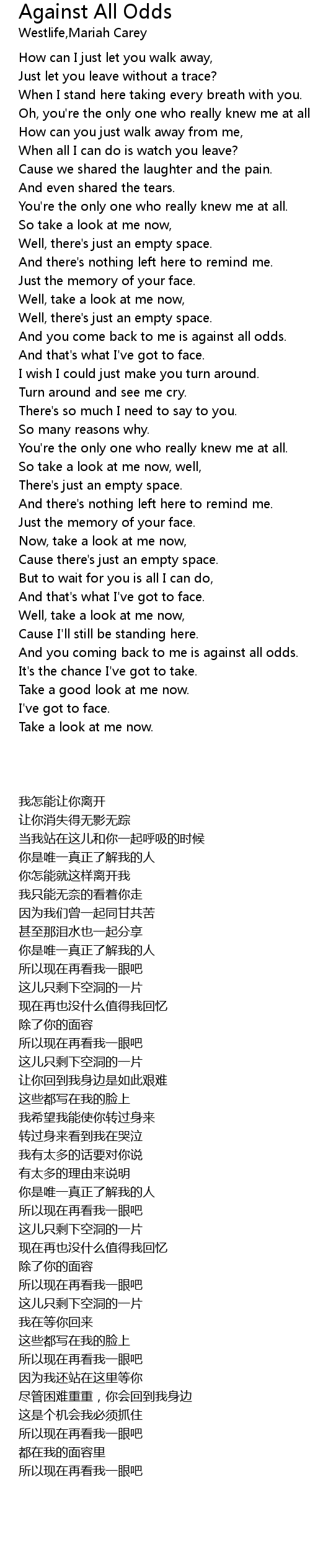And you come back to me is against all odds. |