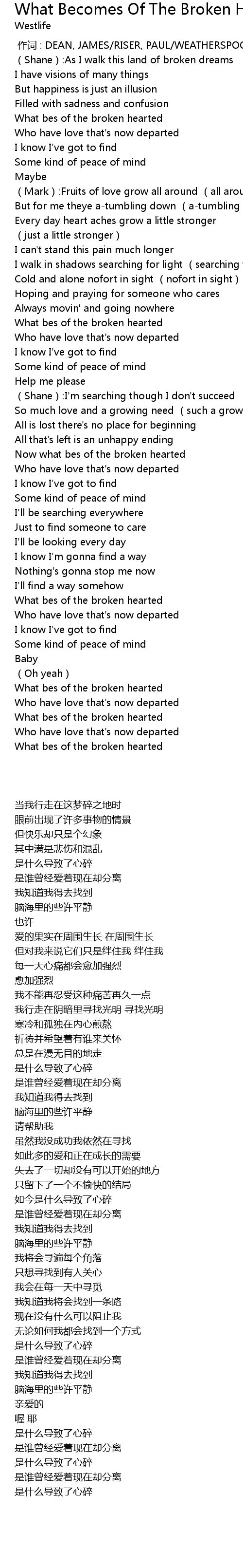 | [03:04.450] | What bes of the broken hearted |