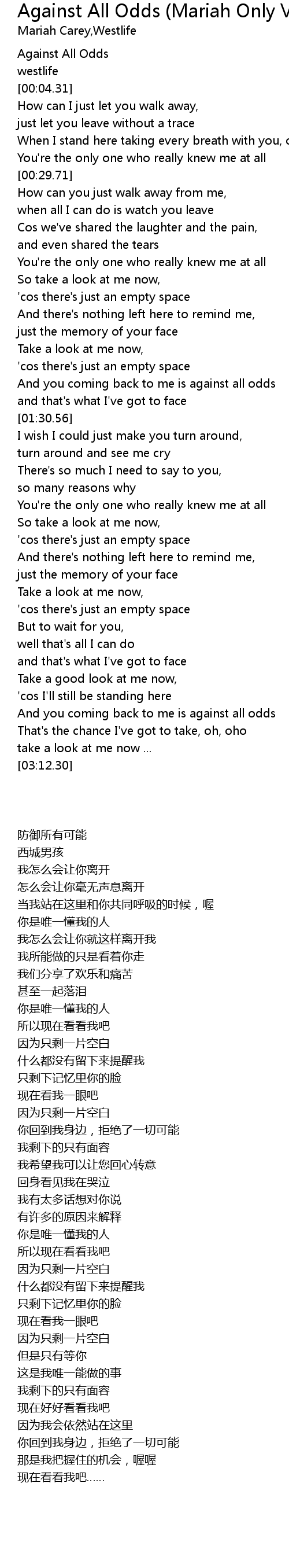 And you coming back to me is against all odds |