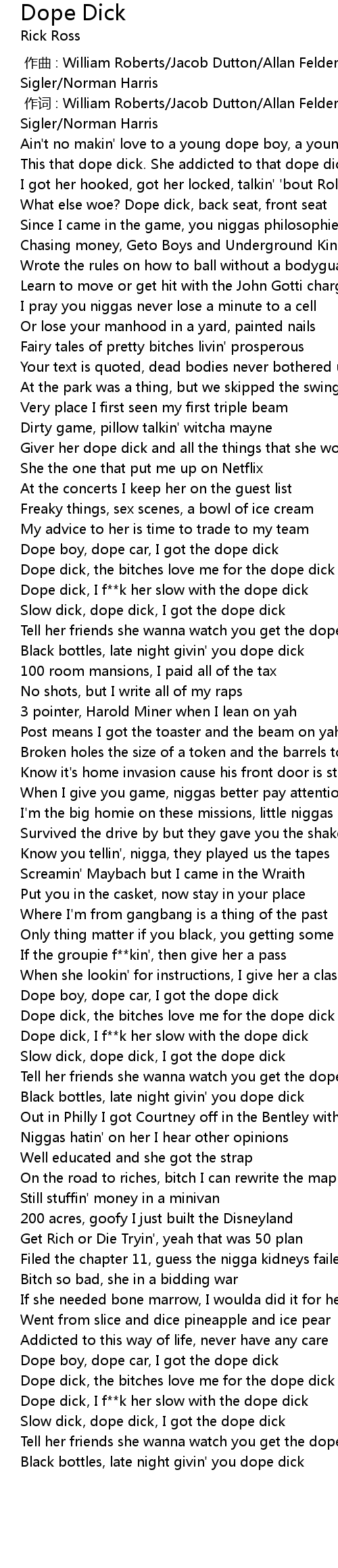 | [02:23.48] | Slow dick, dope dick, I got the dope dick |