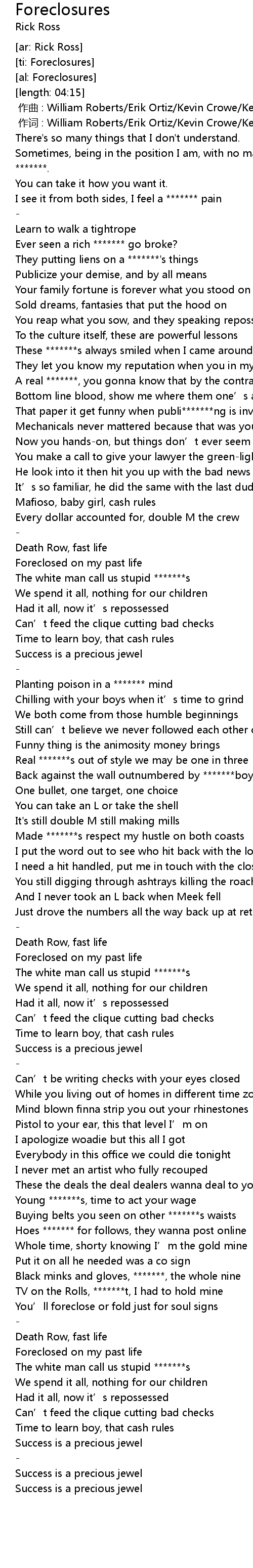 | [00:24.66] | Ever seen a rich ******* go broke? |