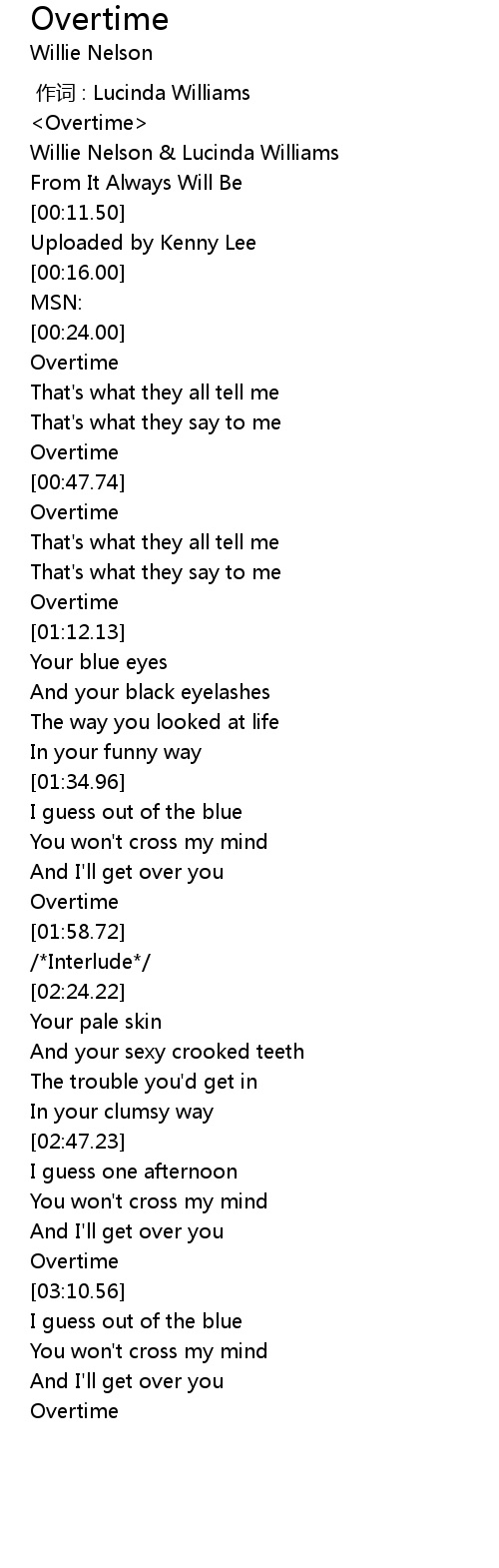 | [00:00.00] | Overtime |