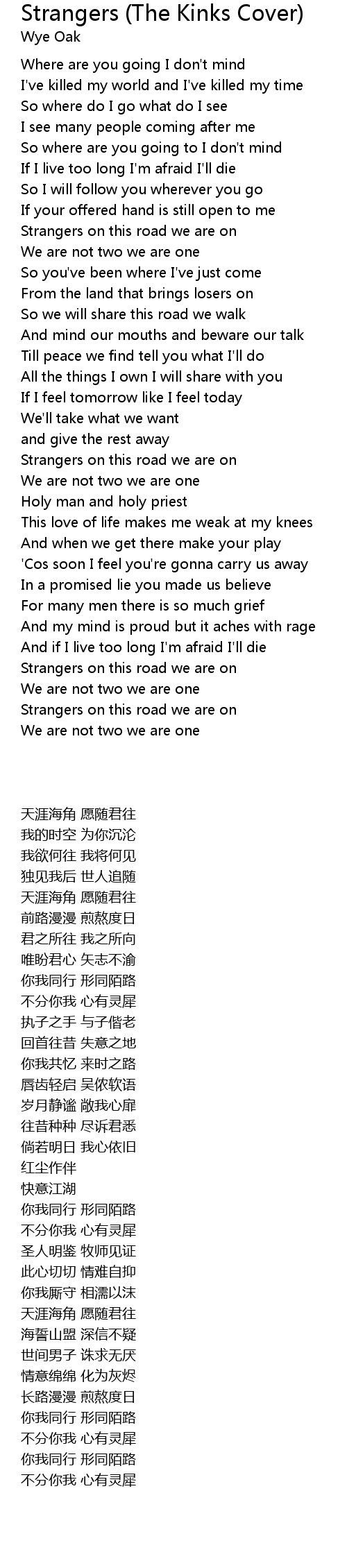 Strangers on this road we are on |