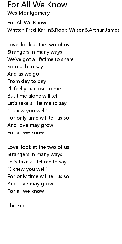 For All We Know |