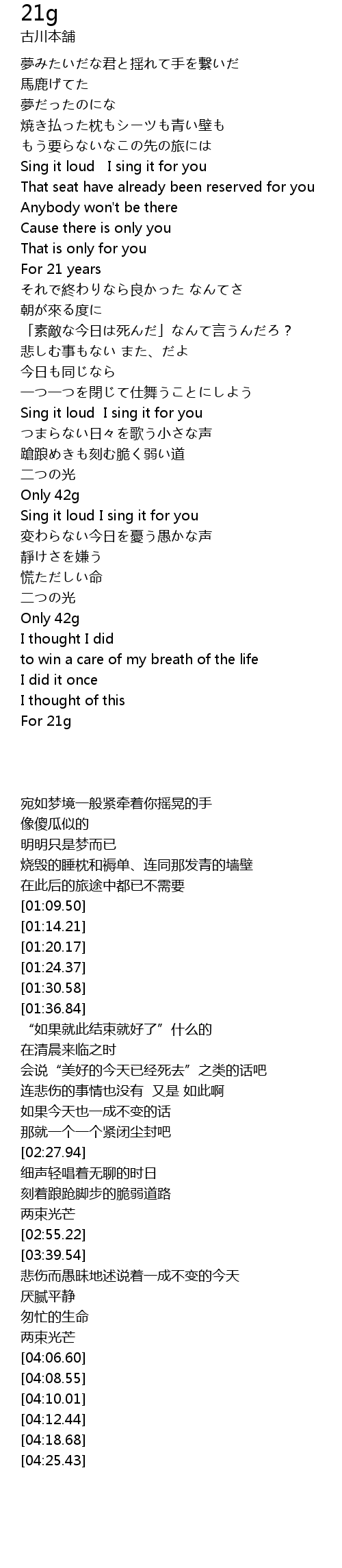 | [04:25.43] | For 21g |