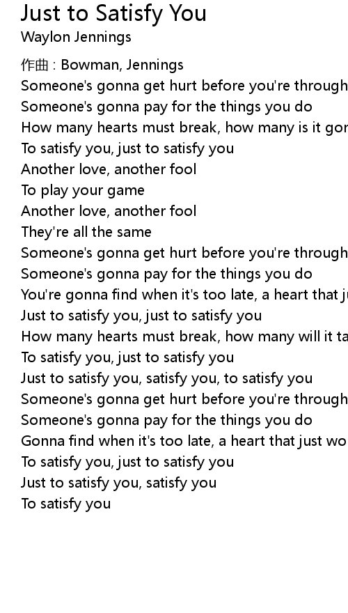 | Just to satisfy you, satisfy you, to satisfy you | |