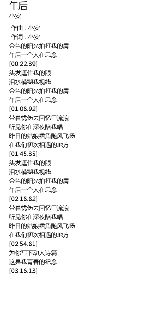 | [00:01.00] | 作词 : 小安 |