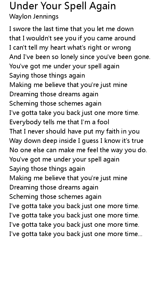 You've got me under your spell again |