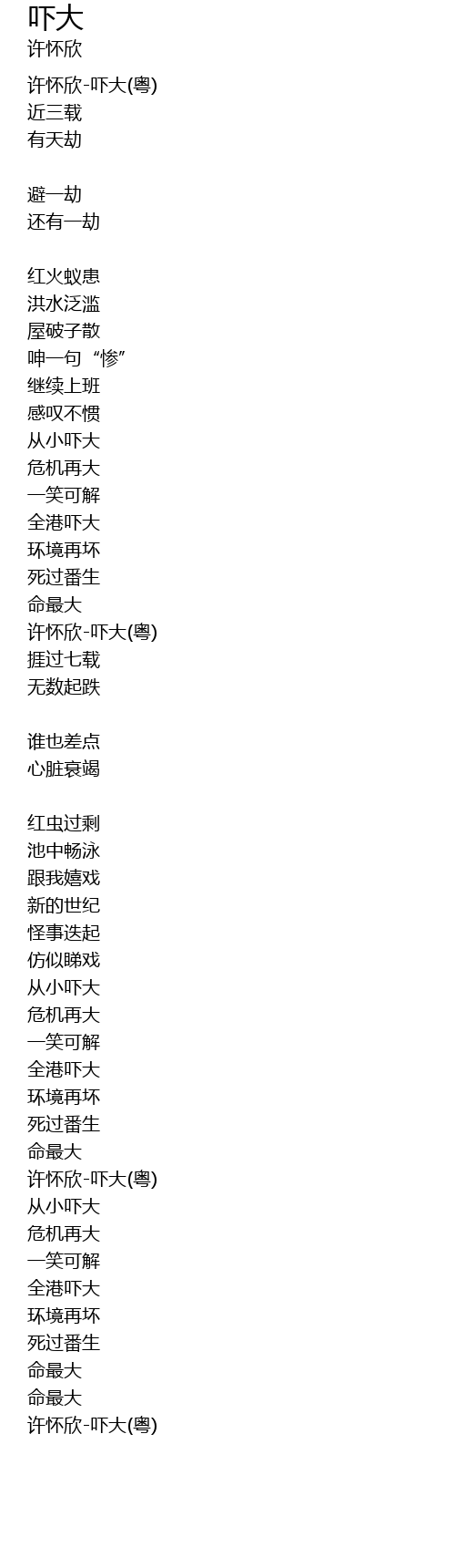 许怀欣-吓大(粤) |