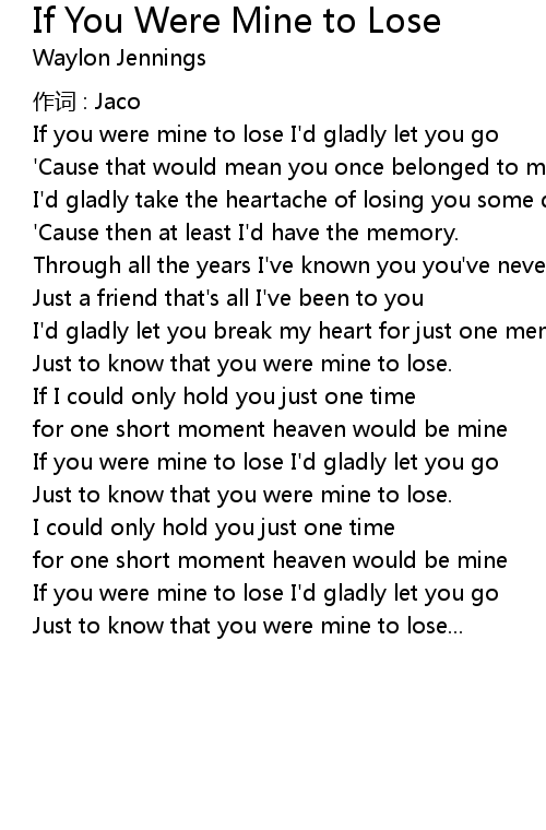 | If you were mine to lose I'd gladly let you go | |