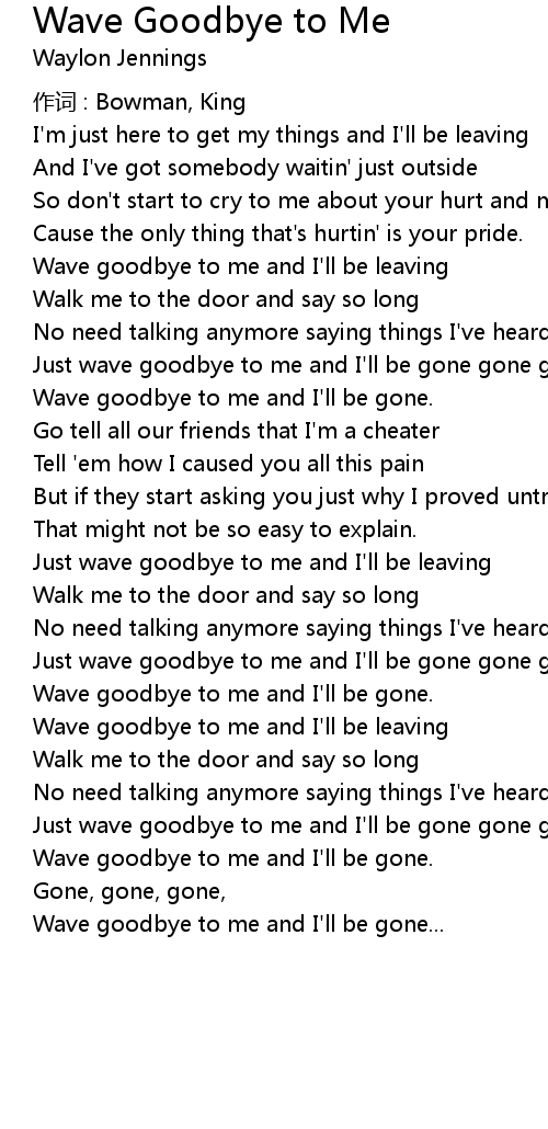 | Just wave goodbye to me and I' ll be leaving | |