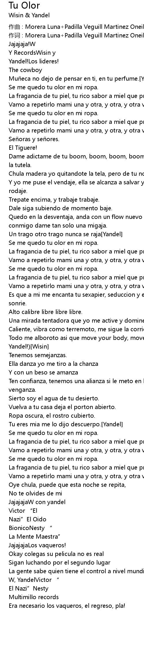 | Muñeca no dejo de pensar en ti, en tu perfume.[Yandel] | |