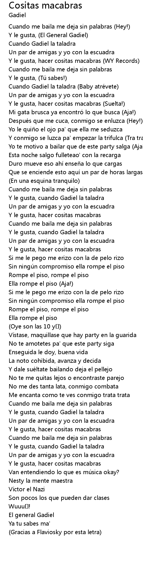 | Y le gusta, hacer cositas macabras (Suelta!) | |