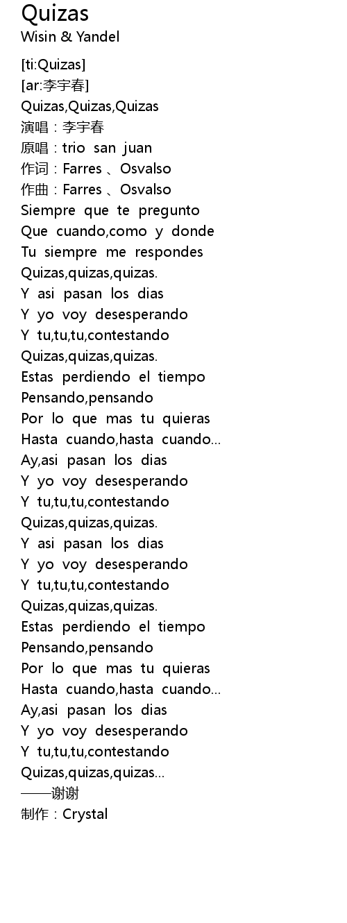 | [00:44.268] | Quizas, quizas, quizas. |