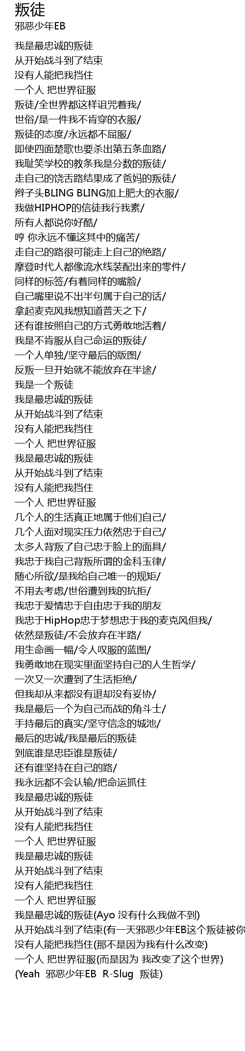 | [03:57.18] | (Yeah 邪恶少年EB R-Slug 叛徒) |
