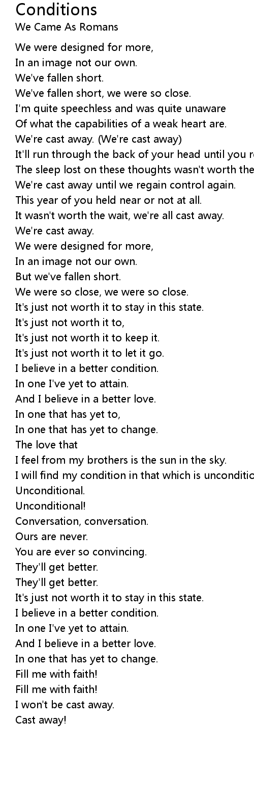 It wasn't worth the wait, we're all cast away. |