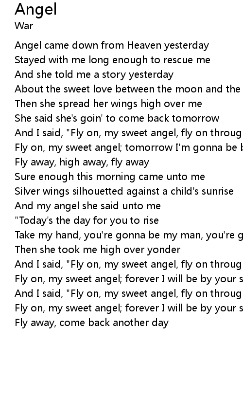 And I said, "Fly on, my sweet angel, fly on through the sky |