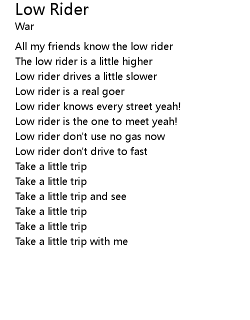 | [00:13.900] | All my friends know the low rider |