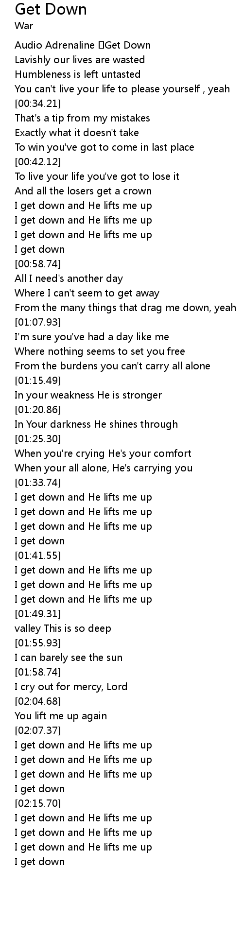 | [00:01.32] | Audio Adrenaline Get Down |