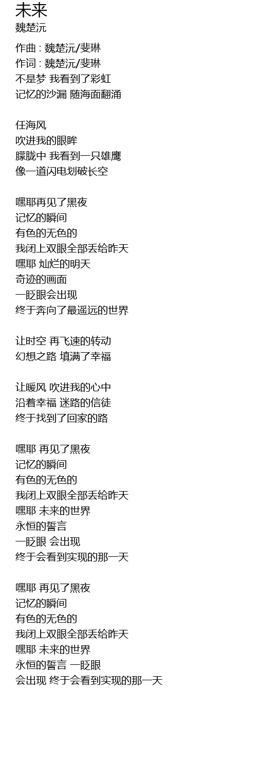 | 作词 : 魏楚沅/斐琳 | |